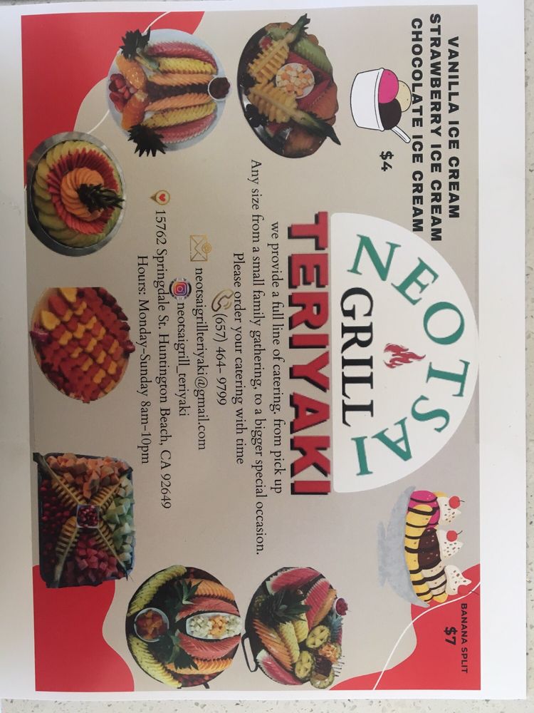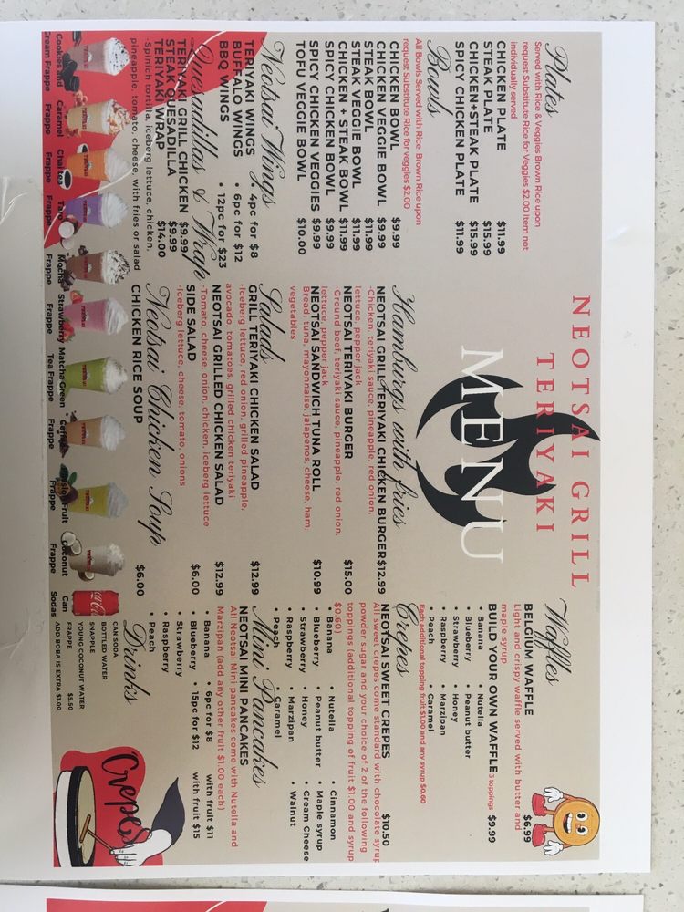 Introducing the Menu at NeoTsai Grill Teriyaki